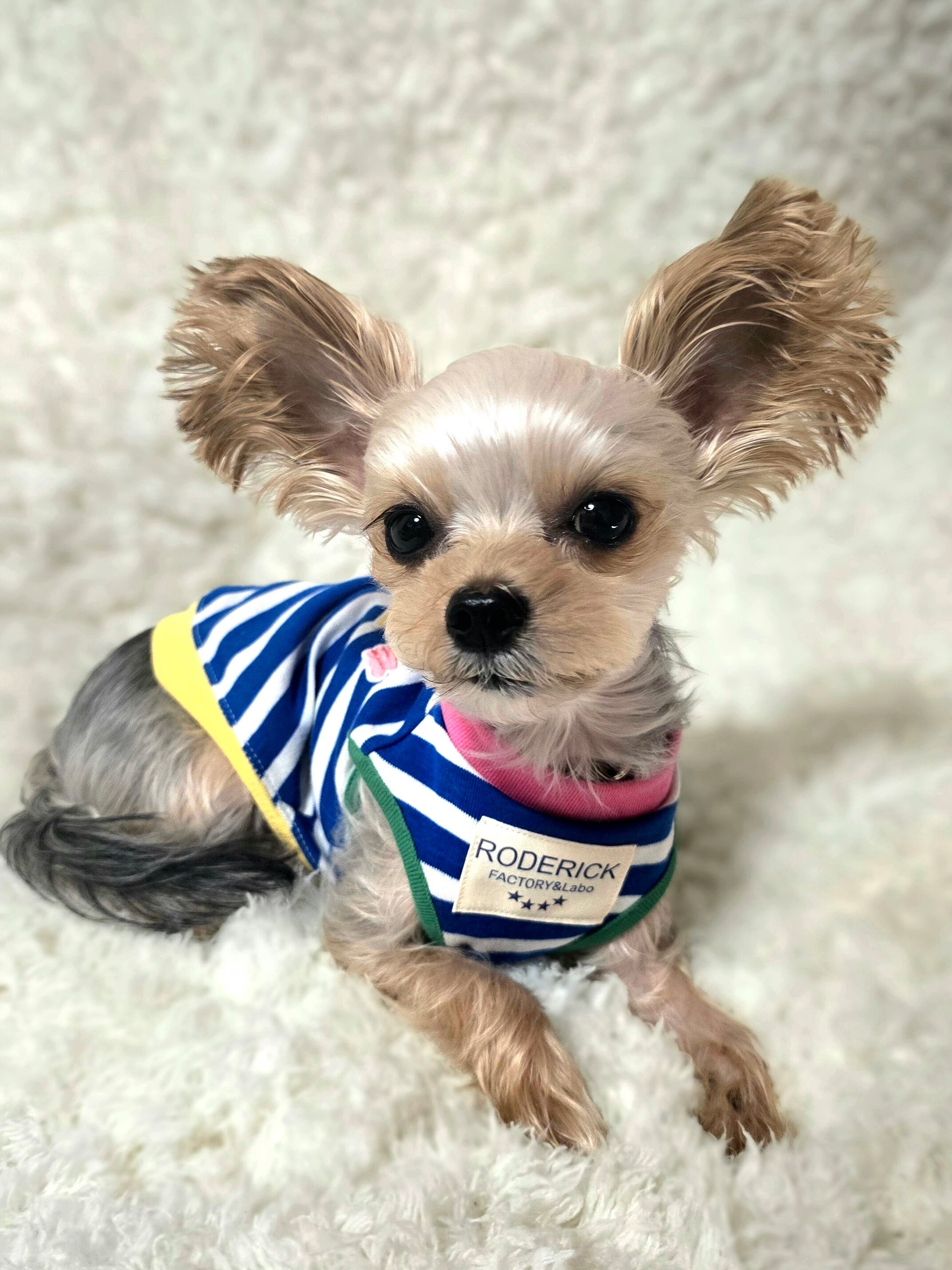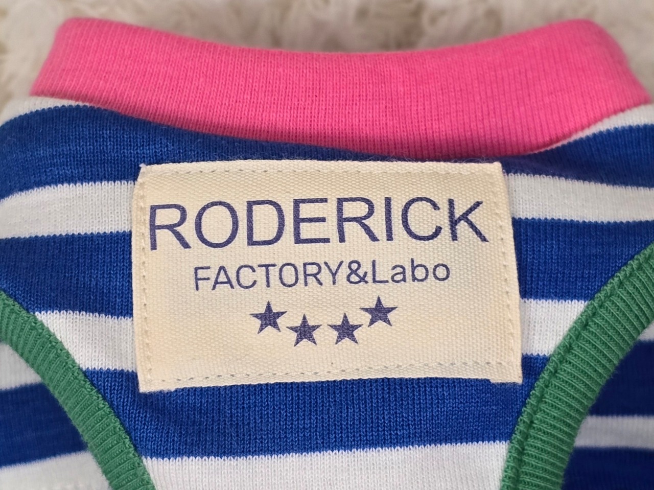 鮮やかなブルーボーダーに、カラフル配色リブを散りばめた、