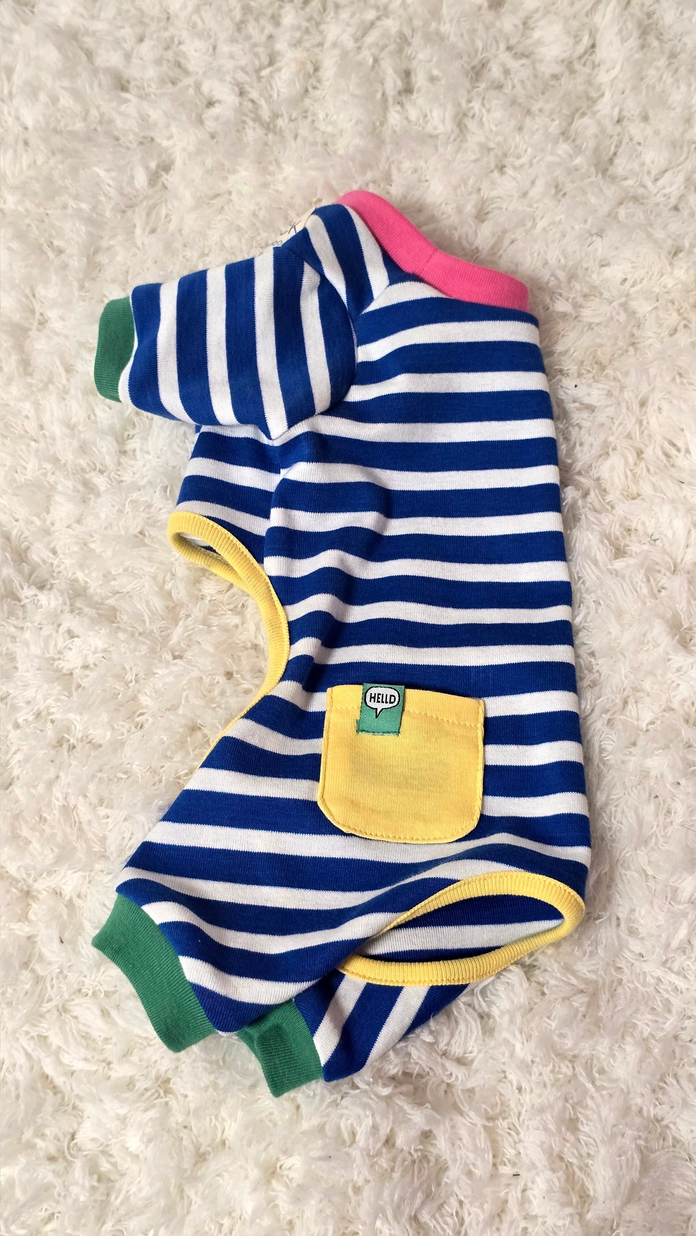 鮮やかなブルーボーダーに、カラフル配色リブを散りばめた、