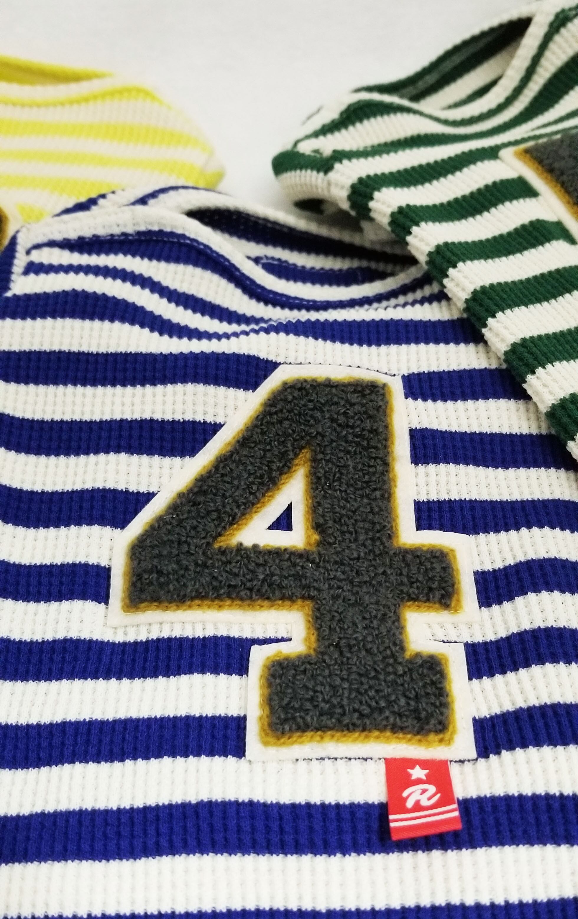 ふわふわのワッフル生地に、大きめなナンバーワッペン!
