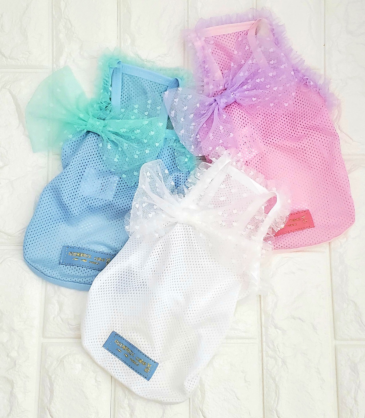 キャンディカラーのキャミソールです。通気性の良いメッシュ生地と、ふんわり柔らかなチュールを合わせているので、優しくエアリーな仕上がりです♡