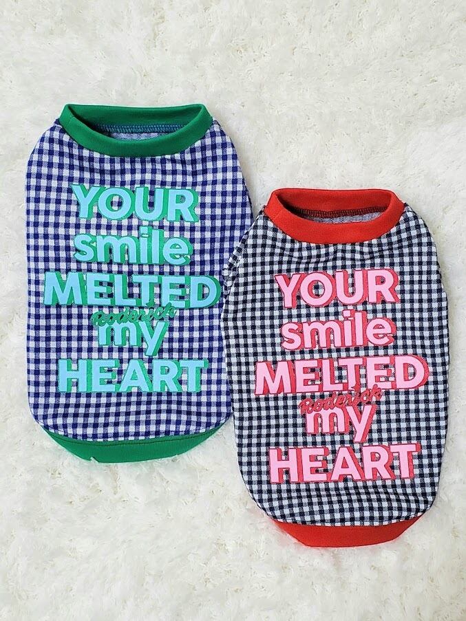 クロに近いネイビーのギンガムには、アカとピンクのグラフィックに赤い配色リブ使いで、