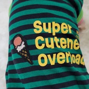 薄手の天竺ボーダーにカラフル配色のお袖とリブでPOPな配色に♪